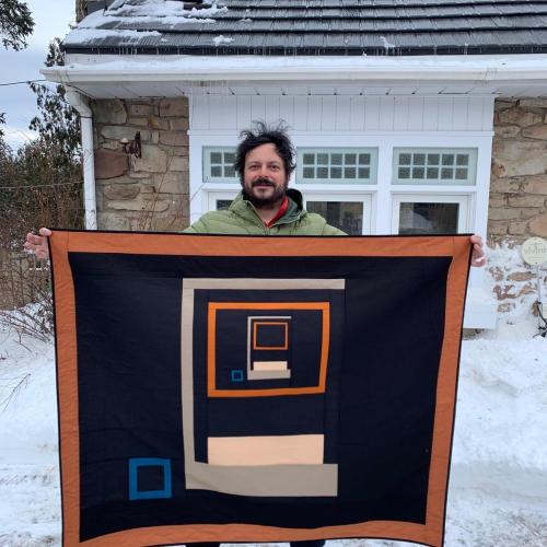 Chico Togni works with discarded wood, cardboard, metal and other found materials to build large sculptures. He also creates situations and happenings within the structures he builds. Most recently he exhibited his work at Kunsthaus Dresden and the Museum der Bildenden Kunst (MdbK) Leipzig, in Germany. He was an artist in residency at Cité International des Arts in Paris and Museumsquartier amongst other institutions, including the Artist Research Fellow at the Smithsonian Institute in Washington D.C., EUA. Chico Togni holds a Bachelor in Sculpture from São Paulo University, Brazil. Chico is currently based in Toronto where he started experimenting with quilting and developed the Bella Roche Stories, an expanding series of quilts that narrates the trajectory of rocks, power tools and pixelart.